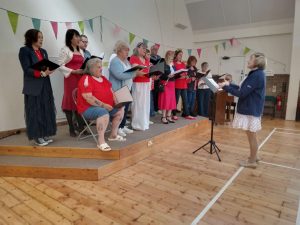 At the start and between courses we were entertained by the Cassiobury and nearby Community Choir (CanCC) to a sing-a-long of favourite wartime songs, such as Chattanooga Choo Choo, The White Cliffs of Dover and We’ll Meet Again.